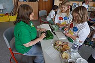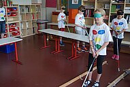 Die Kinder lernten aber auch betroffene Personen kennen und erhielten z.B. Einblick in die Verständigungsmöglichkeiten von blinden und hörgeschädigten Menschen.