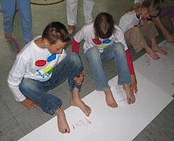 Ich fand das Tandem fahren mit Augenbrille am besten. Das war ein komisches Gefühl, wenn er sich in die Kurven gelehnt hat. Dann waren da noch die Armverletzten. Da mussten wir mit den Füßen einen Knoten in ein Seil machen - das war witzig. Dann mussten wir unseren Namen mit den Füßen schreiben – das war schwer. Dann mussten wir uns Würfel aus Stoff zuwerfen – das war cool.