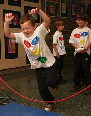 Hüpfen mit verbunden Augen - dazu gehört Überwindung