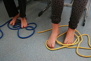 Auch Knoten lassen sich mit den Füßen schlagen.