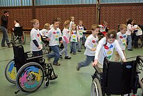 Als Abschluss kann ein Fangspiel mit dem Rollstuhl gemacht werden.