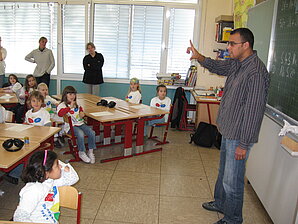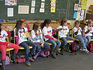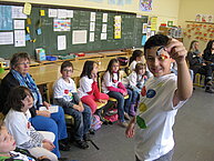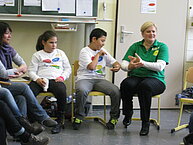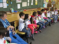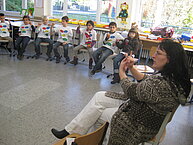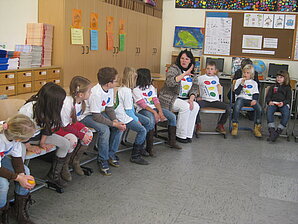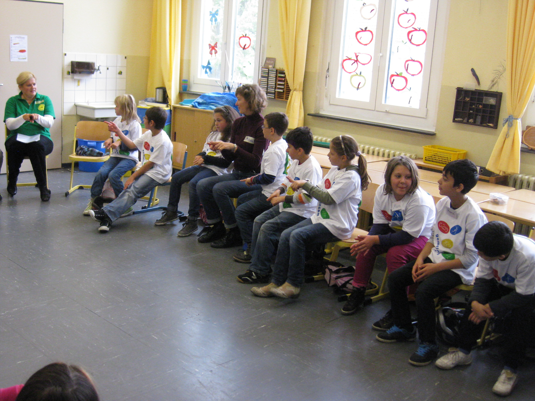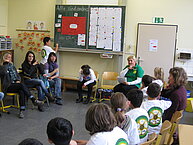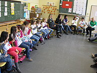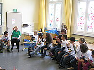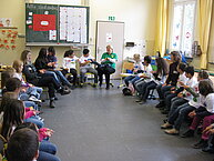 Die Kinder sitzen im Kreis um den Lehrer/in und dürfen raten über welches Thema gerade geredet wird.