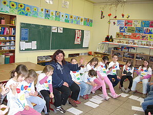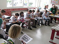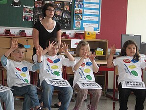 Die Kinder üben die Gebärden sofort mit. Deshalb müssen die Kinder auch öfters in der Fingerhaltung korrigiert werden.