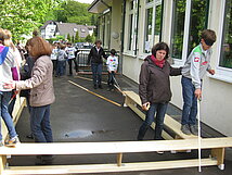 Mit den zehn Dachlatten wird im Schulgebäude oder auf dem Schulhof ein Übungsplatz erstellt.